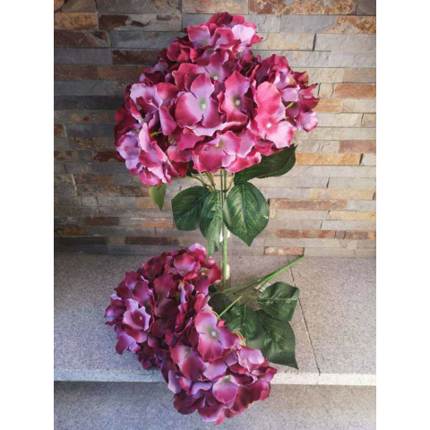 1 kép Hortenzia 5 ágú selyemvirág csokor 46 cm Pink-Burgundi