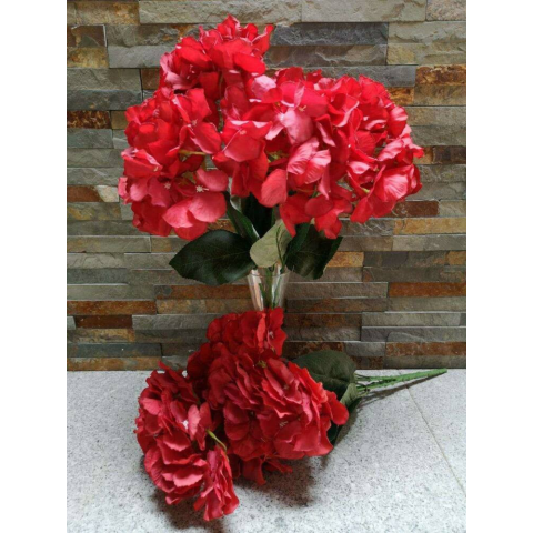 1 kép Hortenzia 5 fejes selyemvirág csokor 45 cm - Piros
