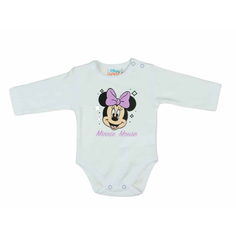 Hosszú ujjú baba body Minnie egér mintával Öltöztesse be csemetéjét ezzel a csodálatos, hosszú ujjú baba bodyval, amelyen a mindenki által kedvelt Minnie egér mintája díszeleg. A nyers színű, 100% pamutból készült body igazi Disney termék, melynek minősé