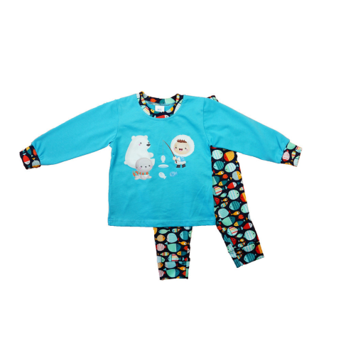 1 kép Hosszú ujjú fiú pizsama -Halas mintával