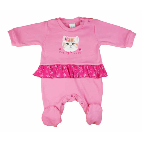 Hosszú ujjú fodros baba rugdalózó cica mintával rugdalózó 1 kép