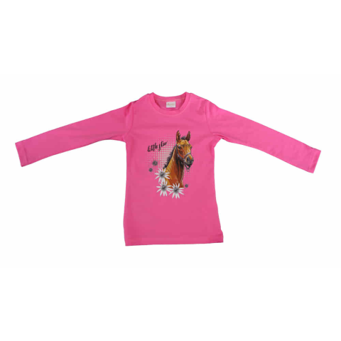 Az apró hercegnők számára terveztük ezt a világos pink hosszú ujjú pólót, amelyen egy cuki lovas minta kelti fel az érdeklődést. Az óvodai napokra és a játszótéri kalandokra egyaránt tökéletes választás, hiszen kényelmes viseletet