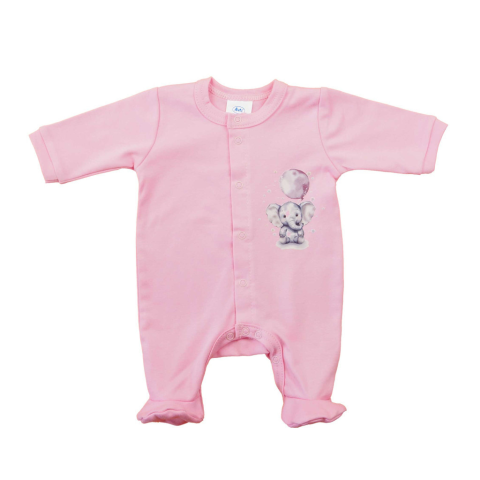 Hosszú ujjú rugdalózó, elefánt mintával A kényelem és a stílus tökéletes kombinációját kínálja ez a rugdalózó, amelyet elefánt mintával díszítettünk. vékony pamut, bababarát anyagból készült, kényelmes viseletet biztosítva egész napra. Elején patentos,