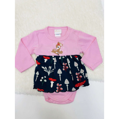 Hosszú ujjú szoknyás baba body őzike mintával - 74-es méret