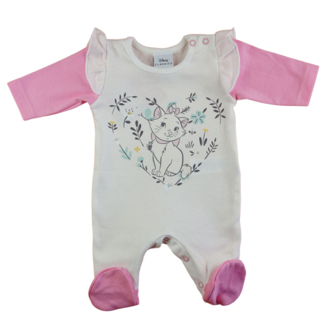 Hosszú ujjú vékony pamut, kislány rugdalózó Marie cica mintával Ez a Marie cica mintás rugdalózó ideális választás a kislányok számára, melyben minden nap könnyedén és kényelmesen mozoghatnak. A fehér - pink árnyalat és a játékos Marie cica minta igazán