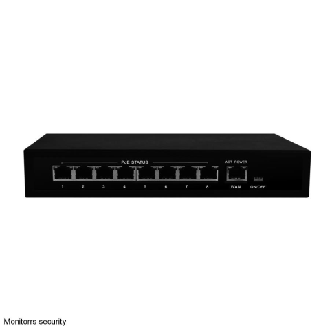 8 portos AI Hi-POE switch (8FE+2FE beépített) Szín: Fekete Műszaki adatok: POE RJ45 portok: 8×100Mbps Feltöltési portok: 2×1000Mbps Szabvány: IEEE802.3AF/AT/BT 8. port: 60 W-os PoE kimenet támogatása Tápellátás: AC 110–240V, 50/60Hz Beépített tápegység: HT81 PoE Switch Termék leírása: 9-PORT 10/100M SWITCH WITH 8-PORT POE IEEE 802.3af, IEEE 802.3at PoE Power Output: Total 120Watts Surge Protection: Common-mode voltage 4KV, differential-mode Voltage 2KV Power Adaptor: AC100V~240V Weight:1.1 KG