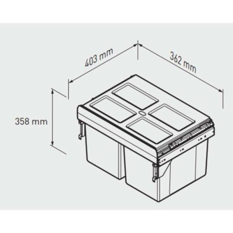 1 kép Hulladékgyűjtő szemetes PRACTI ECO 400, 2x16 literes, antracit, előlaprögzítővel