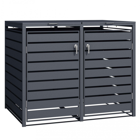 Kettő 60 literes, 120 literes vagy 240 literes űrtartalmú szemetes tárolására alkalmas, és porszórt acélból készül antracit (RAL 7016) színű, így stílusosan elrejthető a szemetes. A nem védett szemeteskukákkal ellentétben ez az elegáns tároló megvédi a ké