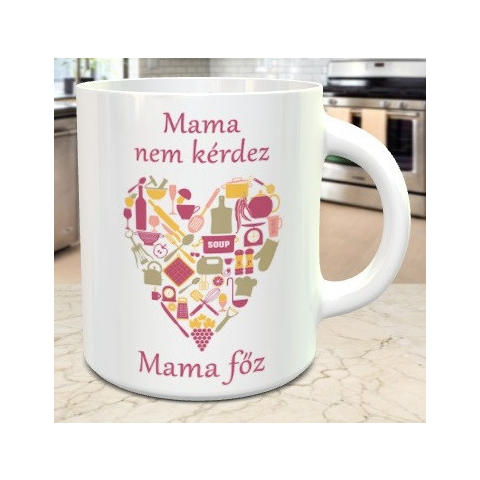 Humoros bögre nagyszülőnek, mama főz. Mama nem kérdez, mama főz, ajándék olyan nagymamáknak akiktól soha nem távozik éhesen az unoka. Lepd meg te is a legjobb nagymamát születésnapján, névnapján egy szuper tartós mintával díszített bögrével. Válaszd ki a