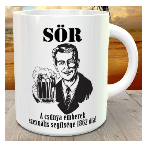 Humoros bögre, ajándék sör kedvelő férfiaknak. Vicces bögre férfiaknak. Sör, A csúnya emberek szexuális segítsége 1862 óta! felirattal. Többféle szín, többféle kialakítás, akár ajándék dobozzal is. Egyedi nyomtatású bögréink kiváló választások személ