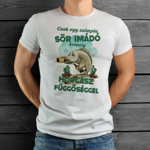 Vicces pecás póló, sör imádó. Csak egy szimpla sörimádó, komoly horgász függőséggel humoros feliratos és grafikás póló férfiaknak. Tökéletes ajándék születésnapra, névnapra minden horgásznak, akik a pecázás mellett már csak a sört szereti jobban. Többféle