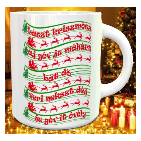 Humoros karácsonyi bögre, lászt kriszmösz. Vicces karácsonyi bögre ajándékba a család minden tagjának, egy klasszikus karácsonyi dal szövegének vicces mintájával. Többféle színben és típusban rendelhető bögre, akár retro zománc bögre kivitelben is. Eg