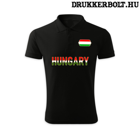 1 kép Hungary feliratos galléros férfi póló - Magyarország szurkolói ingnyakú póló (fekete)