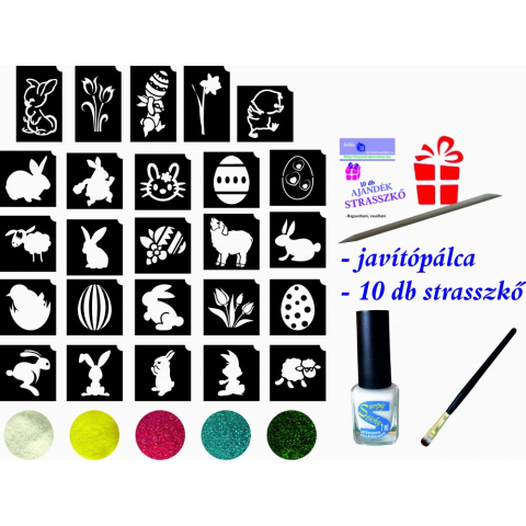 1 kép HÚSVÉTI csillámtetoválás készlet (32 db-os - 25 sablon / 5 csillámpor)