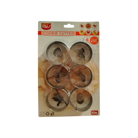 Kör alakú, linzer kiszúró forma, húsvéti mintával. 6 részes készlet. A kiszúrók átmérője 5.5 cm