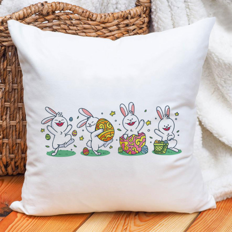 Húsvéti párna, aranyos nyuszis ajándék. Egy párna ami, felnőtteknek és gyerekeknek is egyaránt mosolyt tud csalni az arcukra, ajánljuk ajándékba, de húsvéti dekorációként is tökéletes. Mosható huzat és párnabélés együtt. A párna mérete 40x40 cm, a huz