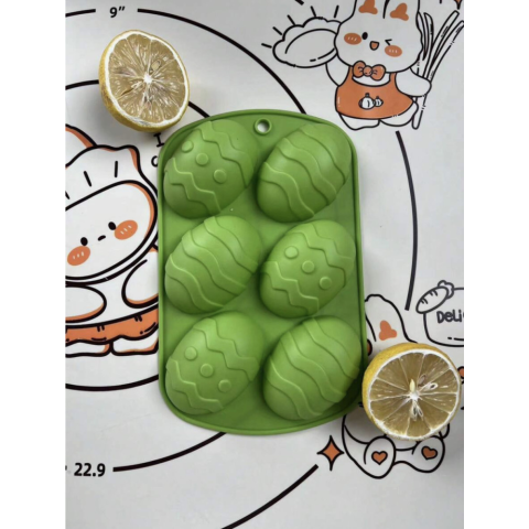 Anyag: szilikon Szín: zöld Méret: lásd a mellékelt képen 6 forma (2 különböző minta) Hőálló, fagyálló Húsvéti szilikon tojás forma, 6 rekeszes Dobd fel a húsvéti hangulatot egyedi édességekkel! A csokoládé csemegék készítésére szolgáló rugalmas szili