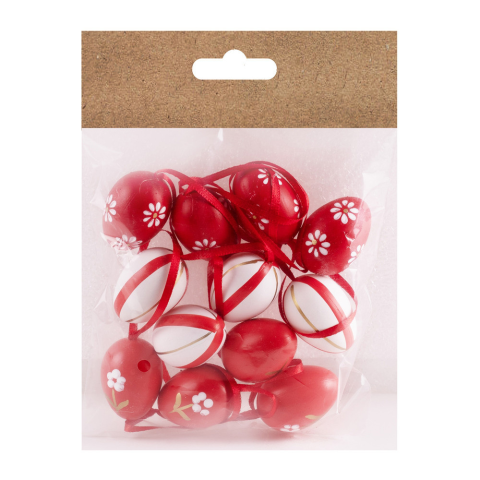 Húsvéti tojás (12 db-os, piros, virágos, csíkos) fajáték 1 kép