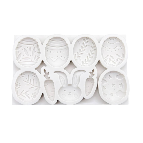 A húsvéti tojás fondant forma szilikonból készült, 12,5 × 7,7 cm méretű, tökéletes eszköz a húsvéti sütemények és desszertek dekoratív kialakításához. A rugalmas szilikon anyag könnyű használatot tesz lehetővé, így egyedi és ünnepi tojásformák készíté