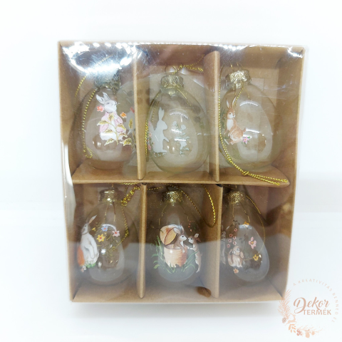 Méret: 5,5 cm Szín: átlátszó, rajta színes húsvéti mintával Anyag: műanyag Tömeg: 55 gramm Egy csomagban 6 db 5,5 cm-es akasztós tojás található.