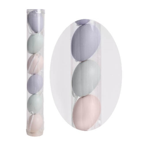 Húsvéti tojásdekoráció pasztell színű akasztóval 6 db/cső