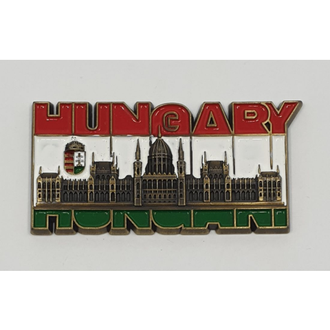 Hungary feliratú hűtőmágnes, címer és Parlament motívummal. Hungary feliratú hűtőmágnes, címer és Parlament motívummal.
