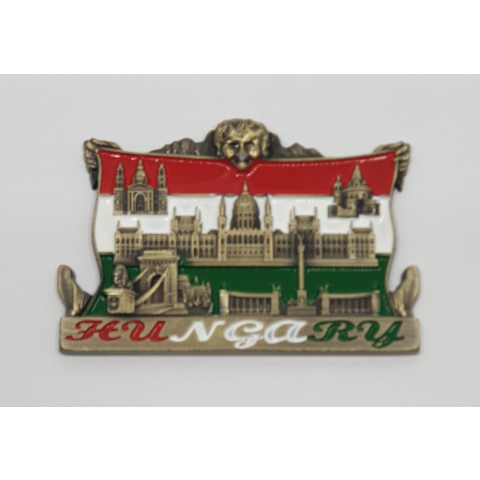 Hungary felíratú hűtőmágnes. Hungary feliratú, fém hűtőmágnes, Budapest nevezetességei mintával. Kedves meglepetés külföldi ismerőseink, barátaink számára.