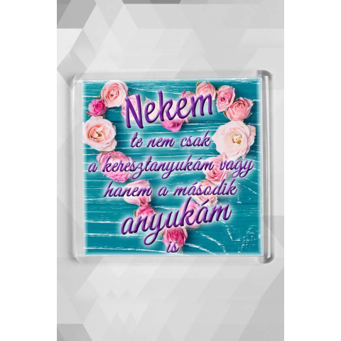 Hűtőmágnes keresztanyának, második anyuka. „Nekem te nem csak a keresztanyukám vagy, hanem a második anyukám is.” feliratos hűtőmágnes. Ez a személyes és szívhez szóló ajándék emlékezteti keresztanyádat arra, hogy milyen fontos szerepet tölt be az életedb