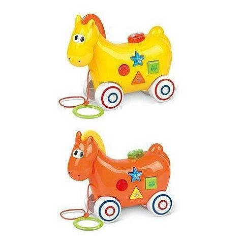 Húzható zenélő ló bébijáték Kerekes paci, aki még világít és zenél is! A Húzható zenélő ló bébijáték egy citromsárga vagy narancssárga paripa, nagy szemekkel A lovat a pici húzni tudja maga után, ráadásul az oldalán lévő gombokat megnyomva a játék ál