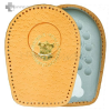 Sarokemelő párna latex habból, valódi bőr felső-, és öntapadós alsó részből. Rugalmassága tehermentesíti az ízületeket járás és állás közben. Ajánlott növekvő vagy már meglévő sarokcsont kinövés esetében. A perforált kör kiemelésével olyan védő terület al