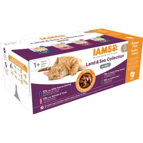 Teljes Iams Cat Delights Land & sea Multipack Aszpikban nedves macskatáp 48x85g termékleírás