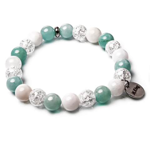 1 kép Ice Candy Blue – Jade és hegyikristály ásvány karkötő dobozban
