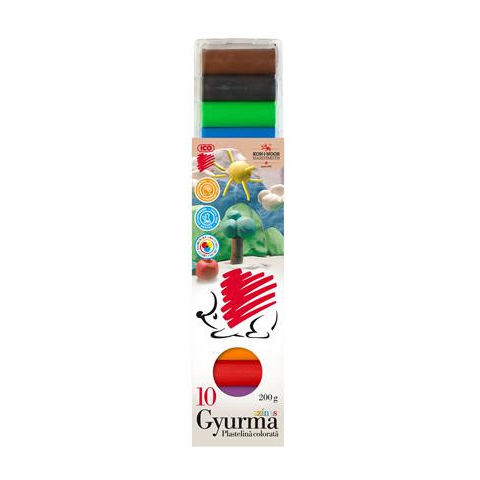 Gyurma, 200 g, ICO Süni, színes - könnyen formázható gyurma - színes kivitelben - 10 féle szín - kiszerelés: 200 g Gyártó/első EU forgalmazó elérhetősége: ICO ZRT 2013 Pomáz, ICO út 5.; EU post@ico.eu www.ico.eu