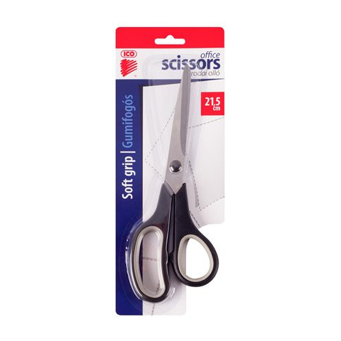 Olló, irodai, 21,5 cm, gumifogós, ICO, fekete irodai olló rozsdamentes acél vágóél gumi borítású műanyag fogórész méret: 21 cm Gyártó/első EU forgalmazó elérhetősége: ICO ZRT 2013 Pomáz, ICO út 5.; EU post@ico.eu www.ico.eu