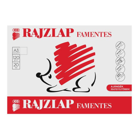 1 kép ICO Rajzlap, famentes, A3, 120 g/m2, ICO "Süni"