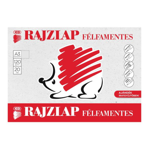 1 kép ICO Rajzlap, félfamentes, A3, 120 g/m2, ICO "Süni"