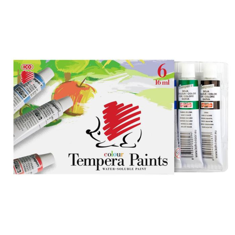 Tempera készlet, 6 darabos, ICO Süni - kiváló minőség, színintezitás és jól fedő, élénk színek - tubusos kiszerelés - 16 ml/tubus - jó festhetőség és keverhetőség Gyártó/első EU forgalmazó elérhetősége: ICO ZRT 2013 Pomáz, ICO út 5.; EU post@ico.eu w