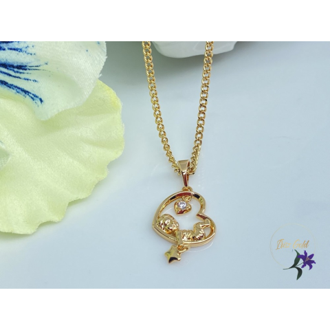 Szív alakú medál kisbabával. 55 cm nyaklánc jár hozzá.Ajándék diszdobozban, a doboz szine mintázata változhat.Szin: 18K Méret: 55cm /2mm Medál: 29x13mm