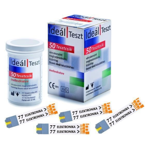 (Dcont) Az Ideál Teszt tesztcsík a Dont Ideál vércukormérő készülékkel használható vércukor önellenőrzésre. A tesztcsíkokat diabéteszes betegek alkalmazhatják saját vércukorszintjük megállapítására, valamint egészségügyi személyzet is professzionális vé