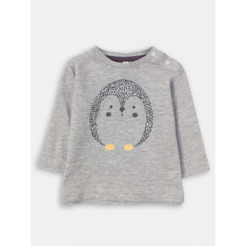 IDEXE pingvinmintás szürke hosszú ujjú babafelső