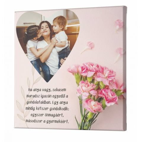 Egy tökéletes, meghitt ajándék anyukák számára bármilyen alkalomra. Lepd meg anyukádat kedvenc közös fényképeitekkel egy gyönyörű montázs vászonképen. Amennyiben nem írsz egyedi idézetet akkor a termékképen látható idézet kerül rá a vászonképedre!