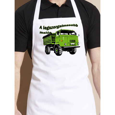 IFA L60 kötény, legszorgalmasabb melós. Ajándék a legszorgalmasabb munkatársnak egy IFA L60 tartós nyomatával. Lepd meg kollegádat egy ilyen köténnyel születésnapján, névnapján vagy nyugdíjba vonulása alkalmából. A kötény fekete és fehér színben is válasz