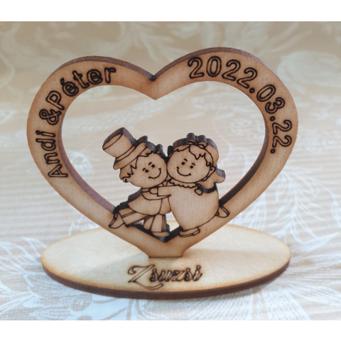 1 kép Ifjú pár szívben fából ,Különleges, személyre szabott köszönetajándék és ültetőkártya