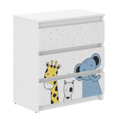 1 kép Ifjúsági 3 fiókos Komód - Állatok #fehér