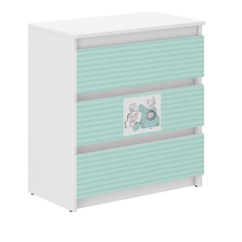3 Fiókos Gyermek Komód - Vidám Türkiz-Fehér Mintával 👧 Ez a bájos, 3 fiókos komód tökéletes választás gyermeked szobájába! Praktikus tárolóhelyet biztosít játékoknak, ruháknak és egyéb holmiknak, miközben vidám színeivel feldobják a szobát. A minős...