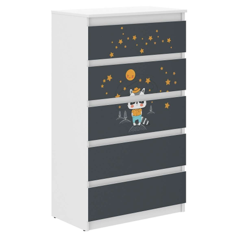 1 kép Ifjúsági 5 fiókos Komód - Borz #fehér-sötétkék