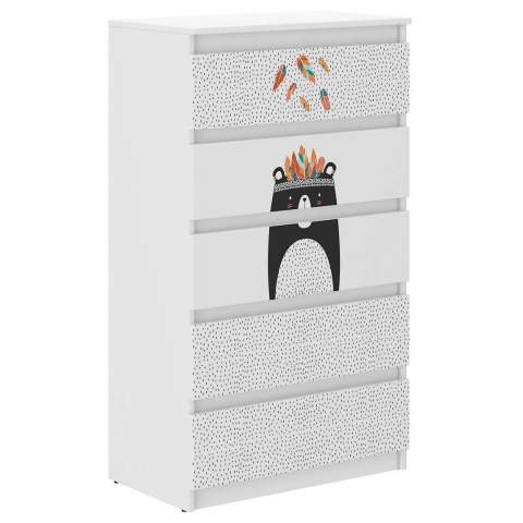 Indián Medvés Gyermek Komód: 5 Fiók, Fehér, Praktikus Tárolás 🐻 Ez a bájos, 5 fiókos komód tökéletes választás gyermeked szobájába! Vidám indián medvés mintájával feldobja a szobát, miközben rengeteg helyet biztosít a játékok, ruhák és egyéb holmik...