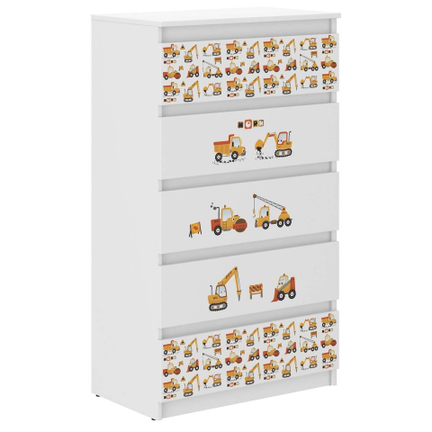 5 Fiókos Komód Munkagépes Mintával - Tökéletes Gyermekszobába 🚜 Ez a modern, 5 fiókos komód ideális választás gyermeked szobájába. Praktikus tárolóhelyet biztosít játékoknak, ruháknak és egyéb holmiknak, miközben vidám munkagépes mintájával feldobja...