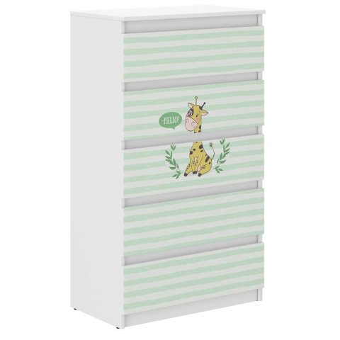 1 kép Ifjúsági 5 fiókos Komód - Zsiráf #fehér-zöld