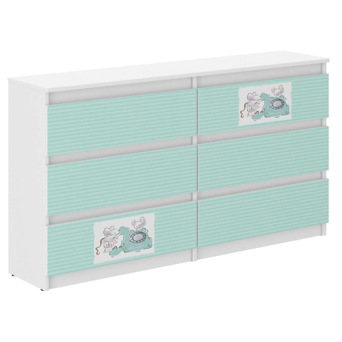 6 Fiókos Gyermek Komód (140cm): Tágas Tároló, Vidám Színek 🌈 Vidámítsd fel gyermeked szobáját ezzel a 6 fiókos, 140 cm széles komóddal! Tökéletes megoldás a játékok, ruhák és egyéb holmik rendezett tárolására. A fehér-türkiz színkombináció és a szí...
